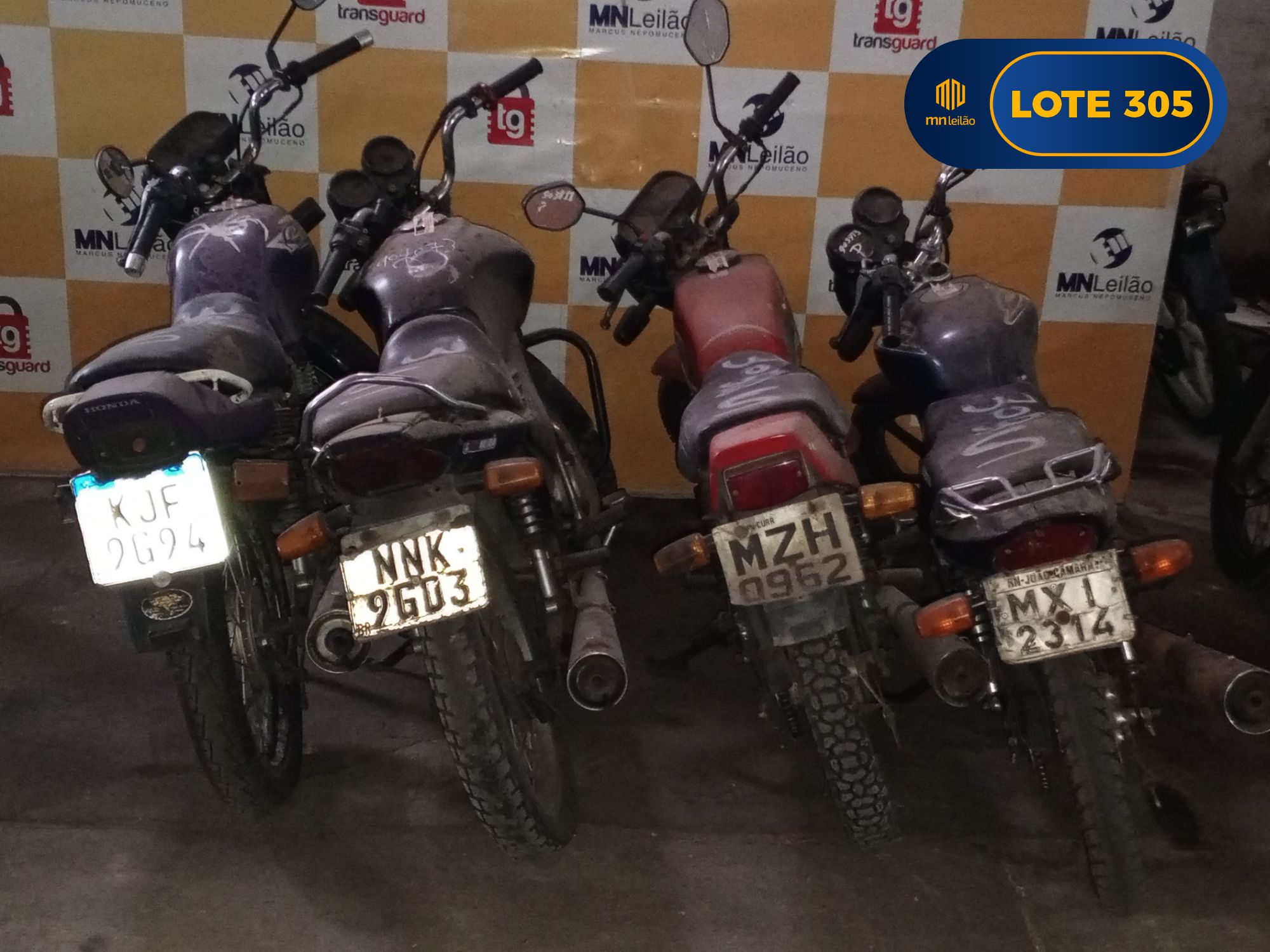 SUCATAS - HONDA/CG 125 FAN KS, PLACA: NNT0096-RN, 2009; - HONDA/NXR125 BROS ES, PLACA: MXL9258-RN; - HONDA/POP100, PLACA: NNY2147-RN, 2010; - HONDA/CG150 TITAN MIX KS, PLACA: NQD6970-PB, 2009.