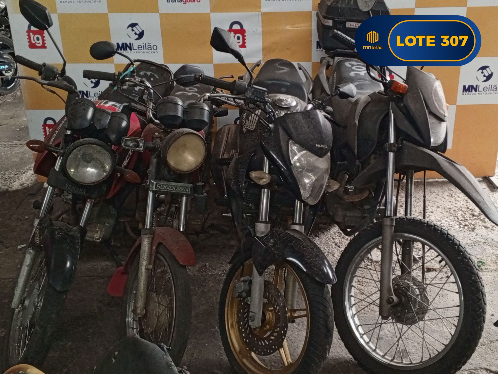 SUCATAS - HONDA/NXR125 BROS KS, PLACA: OKA2341-RN, 2013; - HONDA/CB 300R, PLACA: OWF6296-RN; - SUNDOWN/HUNTER 90, PLACA: MXP3134-RN, 2007; - YAMAHA/YBR125 FACTOR K1, PLACA: QGF3731-RN.